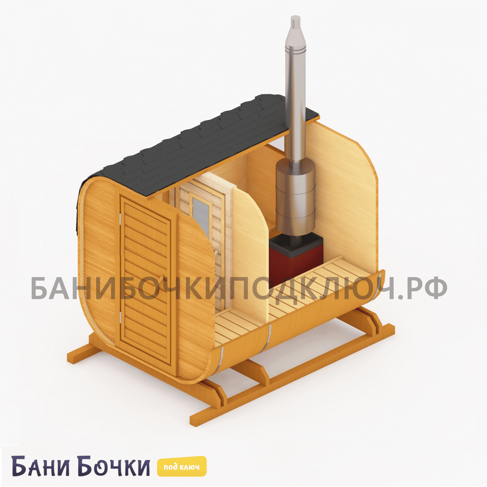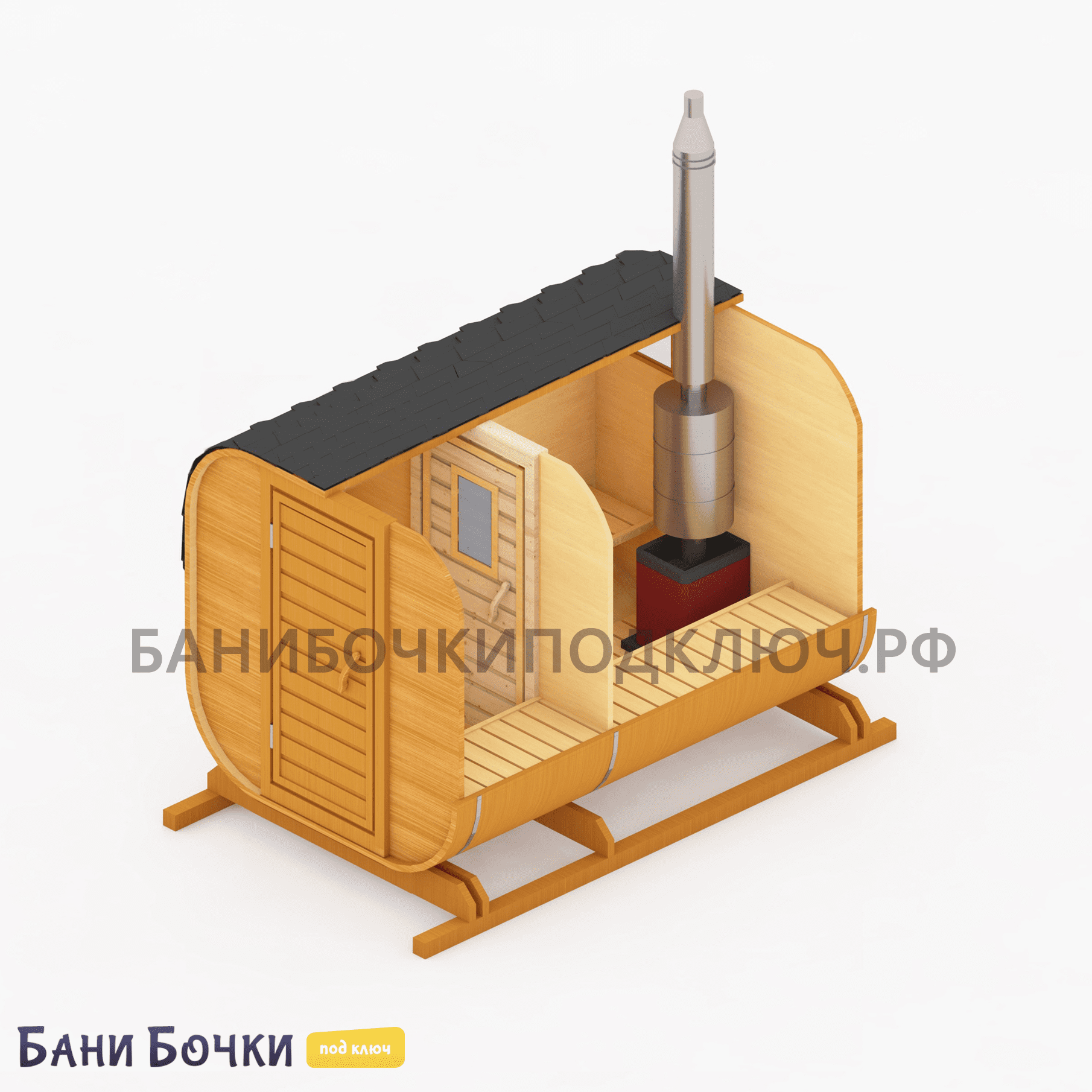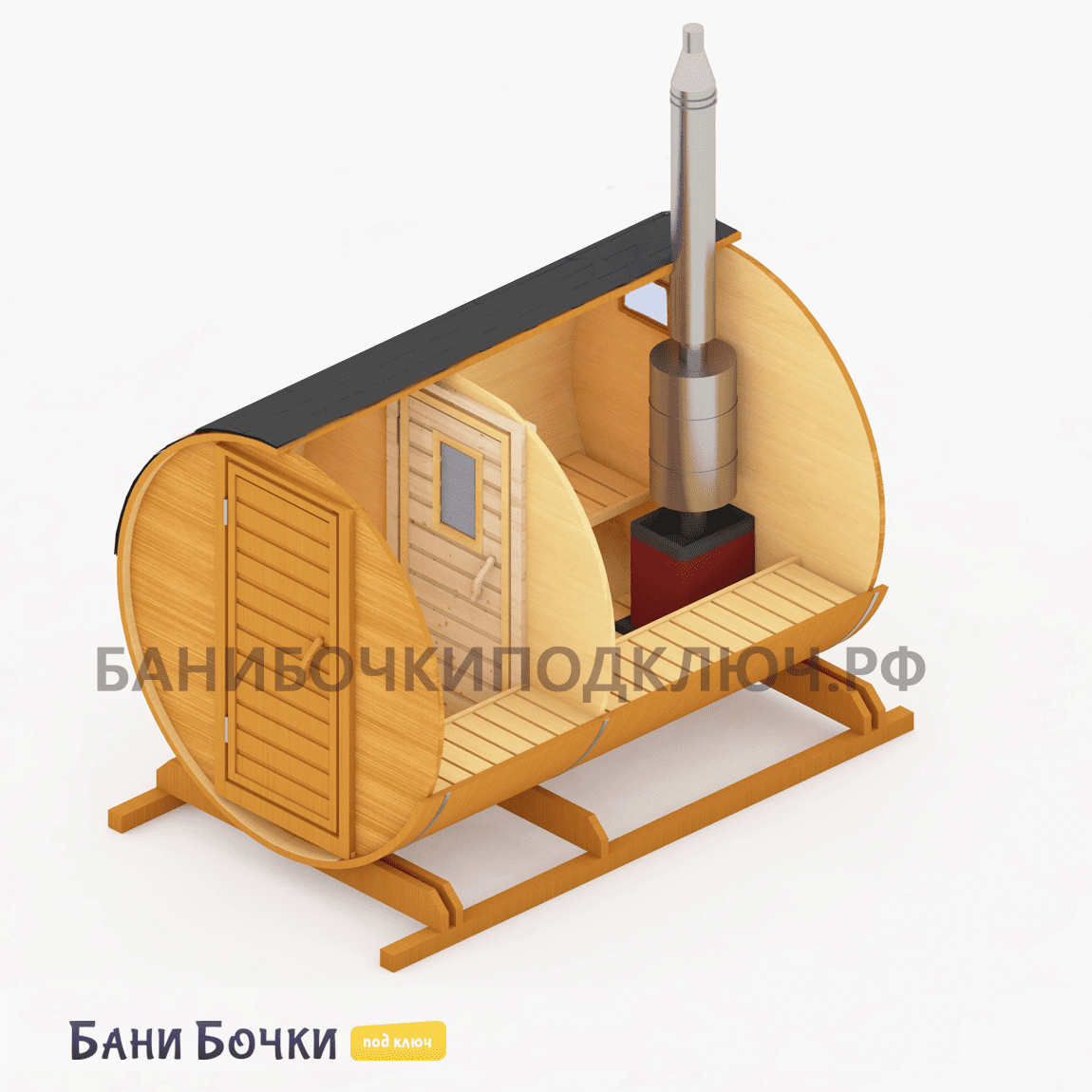 Баня бочка 2 м (под ключ)
